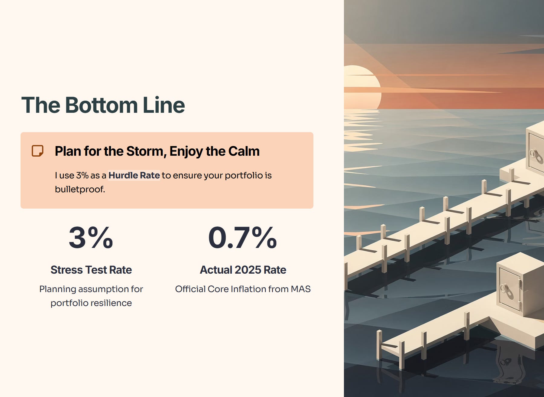The Bottom Line: I use 3% as a “Hurdle Rate” to ensure your portfolio is bulletproof. We plan for the storm (3%) so we can enjoy the calm (0.7%).
