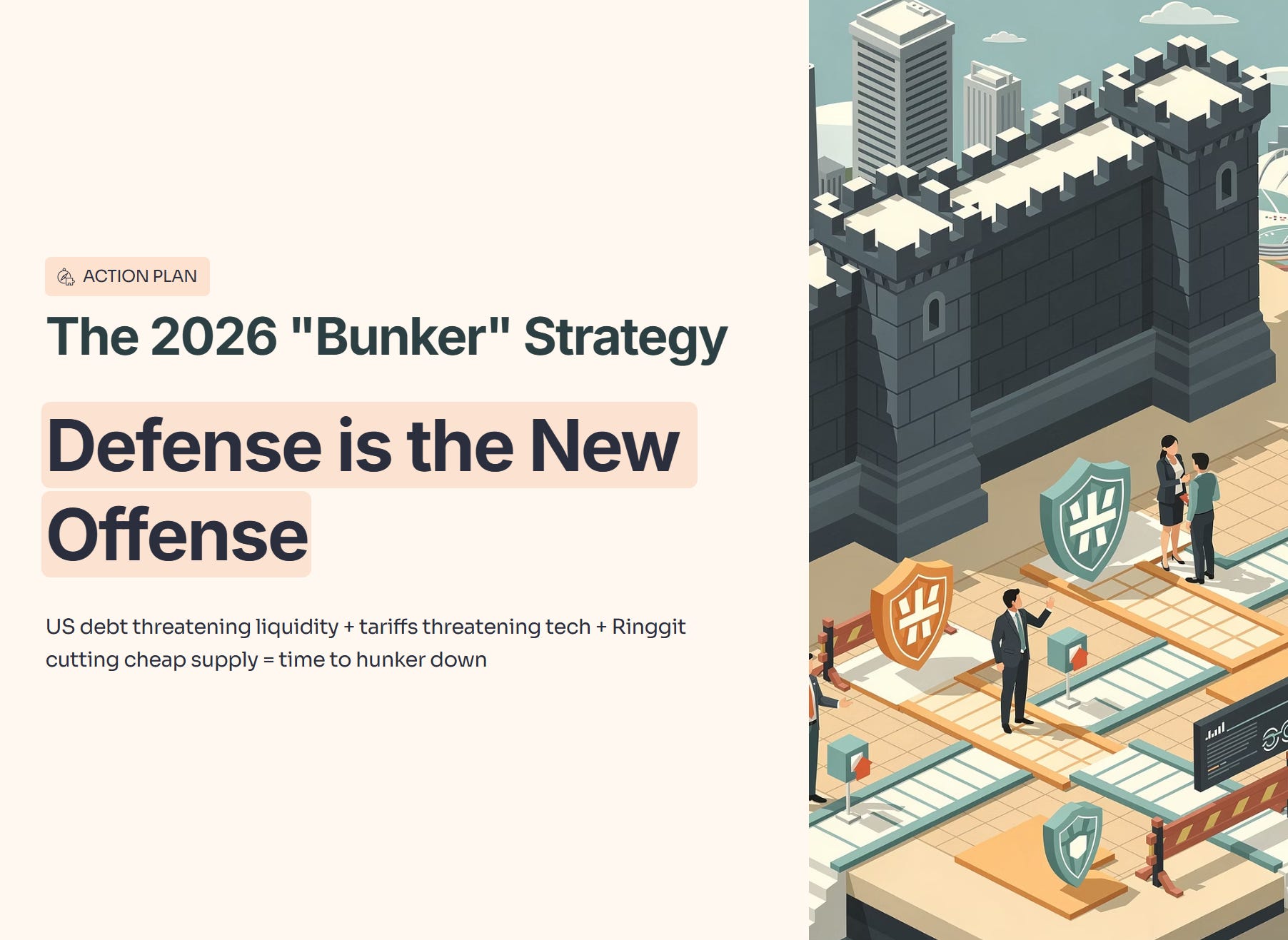 The data is screaming one message: Defense is the new Offense. With US debt threatening liquidity, tariffs threatening tech, and the Ringgit cutting off our cheap supply line, you need to hunker down.