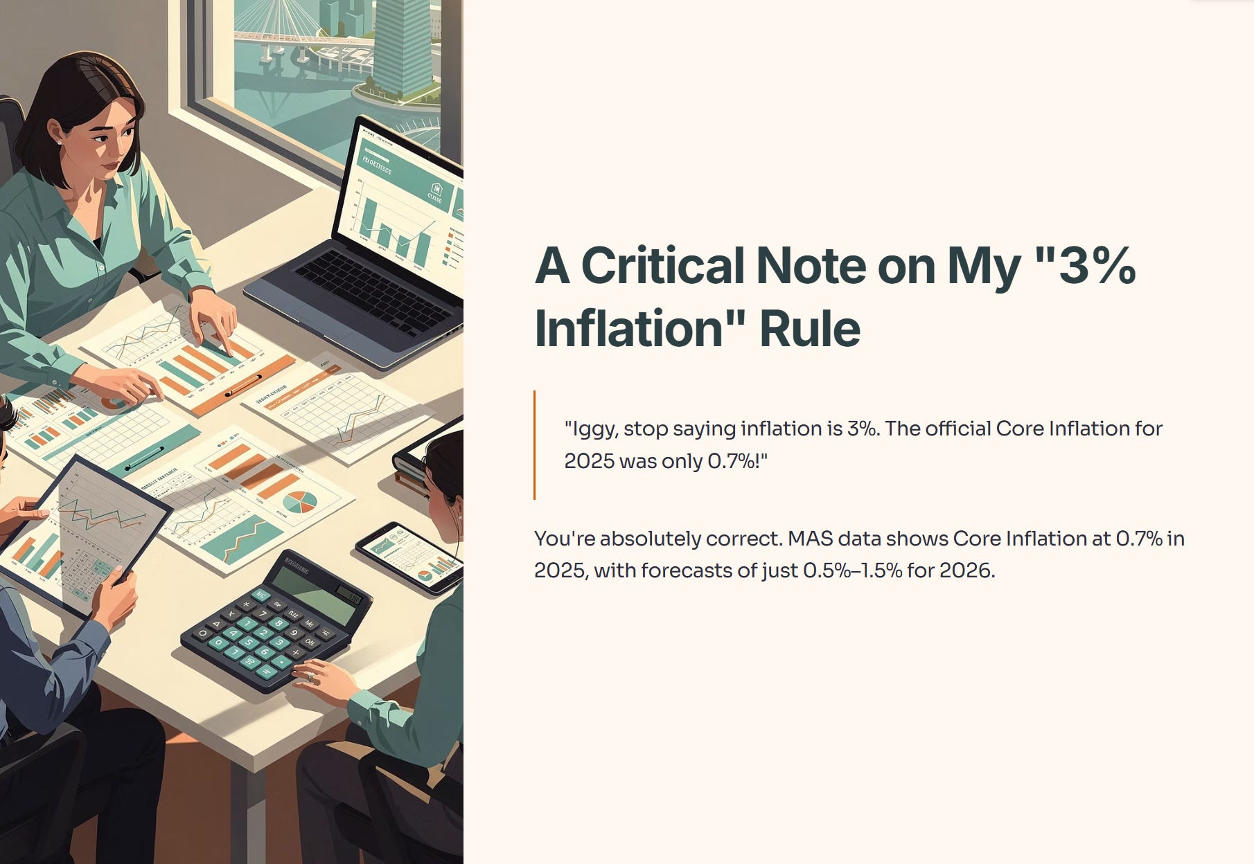 I’ve seen this comment from sharp-eyed readers like Styler in our community, and you are absolutely correct. The official MAS data shows Core Inflation cooling to 0.7% in 2025, with a forecast of just 0.5%–1.5% for 2026. Historically, Singapore’s CPI has indeed averaged below 2%.