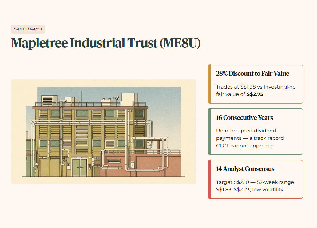 The forward scenario is stable rather than spectacular. CLAR is not going to deliver the capital upside of MIT’s undervaluation story. But for the 55-year-old Singaporean managing SRS capital, stability and 24 years of uninterrupted distributions is precisely what you need. The wallet impact is predictable quarterly income backed by genuine geographic diversification, not a China-concentration bet dressed up as a yield.
