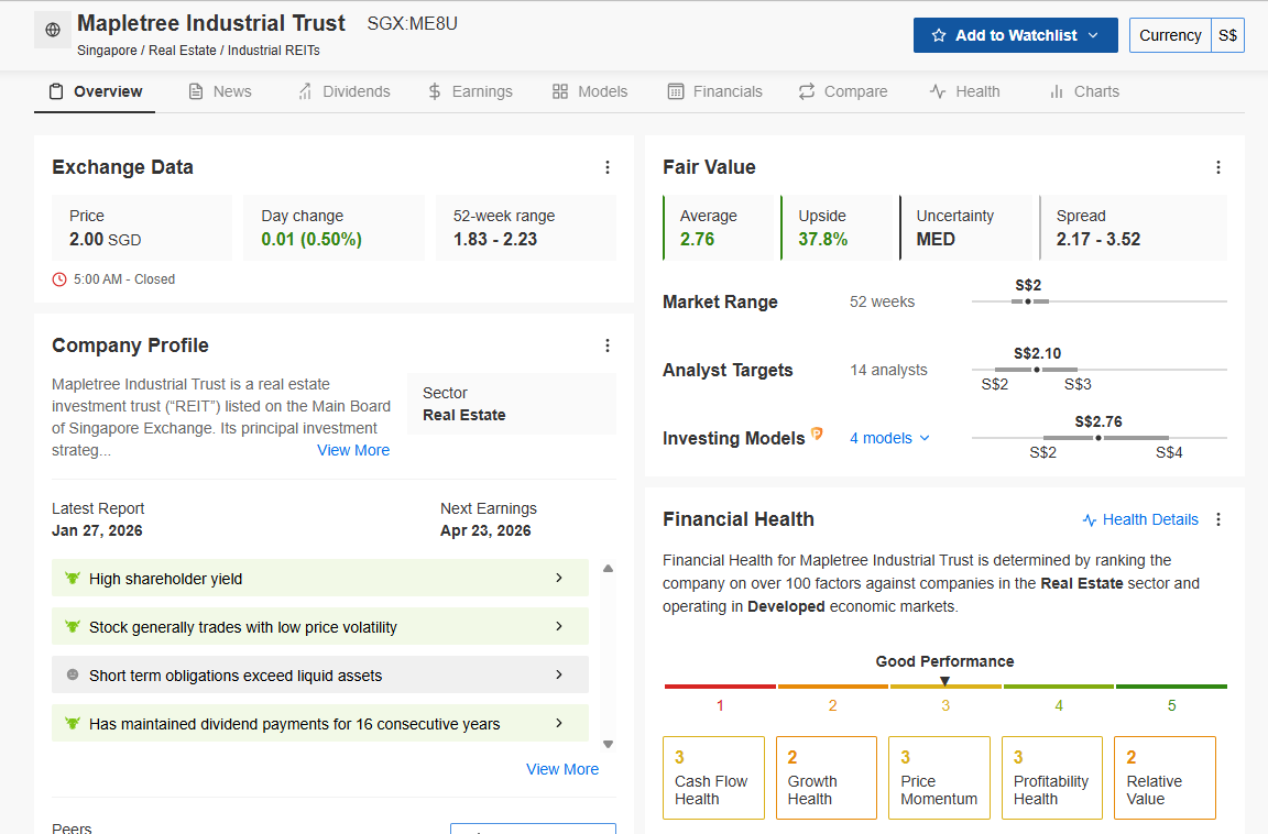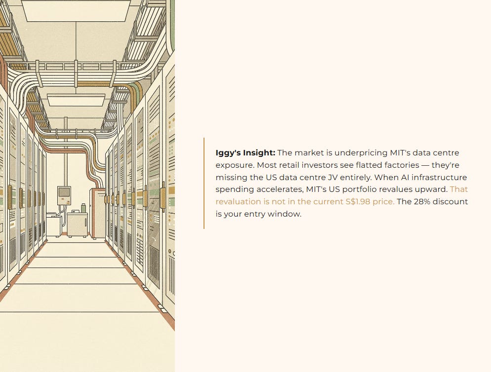 Iggy’s Insight The market is underpricing MIT’s data centre exposure. Most retail investors see an industrial REIT and think flatted factories. They are missing the US data centre JV entirely. When AI infrastructure spending accelerates, MIT’s US portfolio revalues upward. That revaluation is not fully reflected in today’s price. The valuation gap that independent models like InvestingPro are flagging is your entry window.