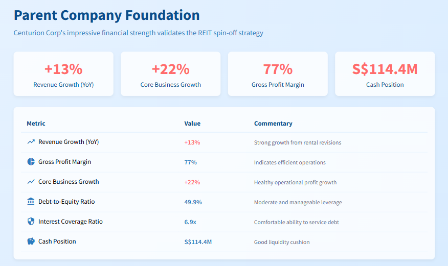 This table outlines Centurion Corporation's key financial results for the first half of 2025. It shows a company with remarkable operational growth, healthy profit margins, and a prudent balance sheet. This underlying strength provides a stable foundation for the new REIT and its future prospects.