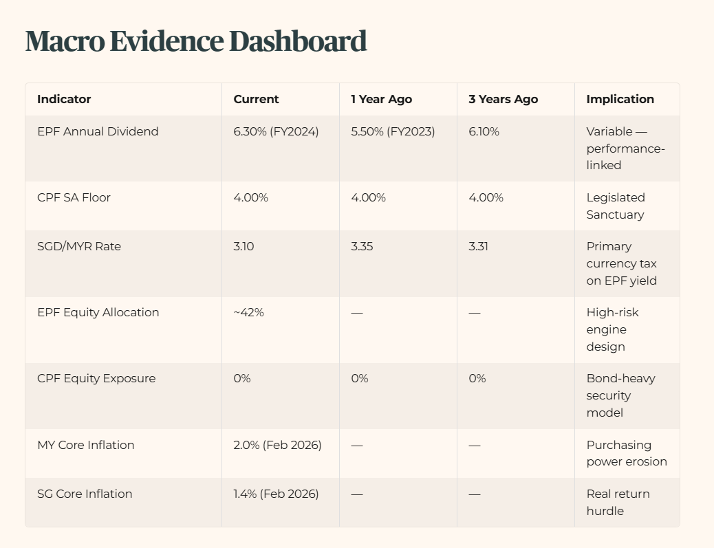 Every major trade corridor in Southeast Asia eventually forces a choice between the speed of growth and the security of the vault. For decades, the Johor-Singapore Causeway has served as the physical manifestation of this tension — a strip of asphalt where capital, labour, and retirement dreams flow in opposite directions. On the northern end, the Employees Provident Fund (EPF) has long stood as a regional powerhouse, recently declaring a 6.30% dividend for 2024 that makes the Singaporean heartland look on with a mix of envy and confusion.