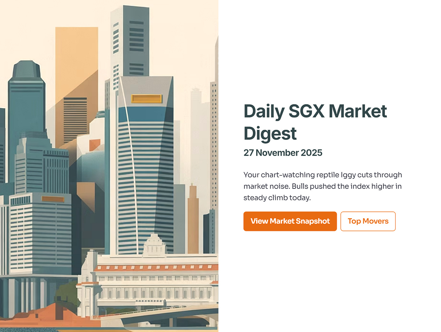 It’s your favourite chart-watching reptile, Iggy (in transit actually in DOHA airport right now), back with the daily scoop. Your go-to guy for making sense of the SGX, I’m here to cut through the noise.