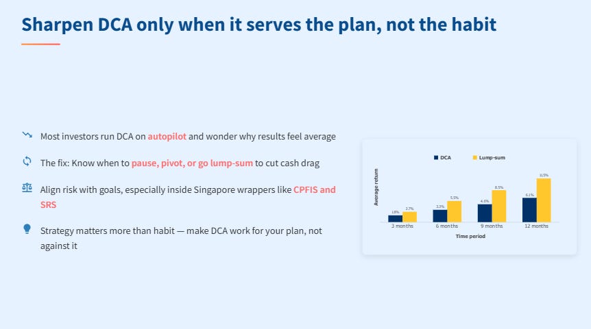 Stop DCA on autopilot—use seven clear triggers to go faster, cut cash drag, and maximise CPF/SRS compounding without taking dumb risk