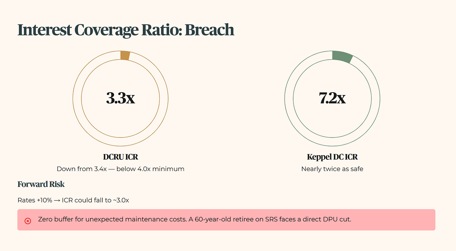 Wallet Impact: A 60-year-old retiree relying on SRS income faces a direct DPU cut if the ICR continues to slide. There is no fortress here.