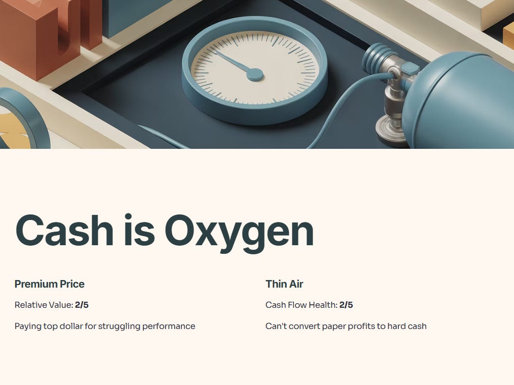You are being asked to pay a premium price (Relative Value: 2/5) for a company that is currently struggling to convert paper profits into hard cash flow (Cash Flow Health: 2/5). In this volatility, cash is oxygen. BBCA is running thin on oxygen.