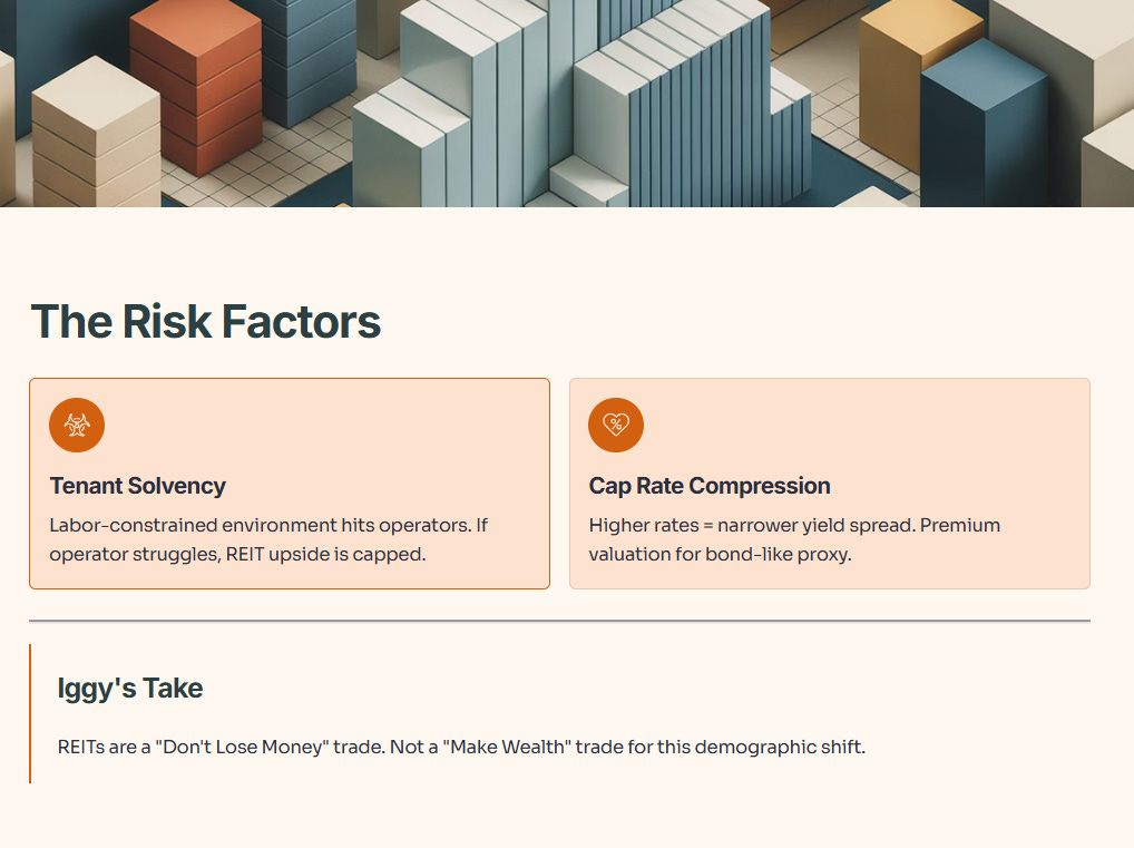 1. Tenant Solvency: In a labor-constrained environment, the operator takes the hit. If the operator struggles, the REIT’s upside is capped.
