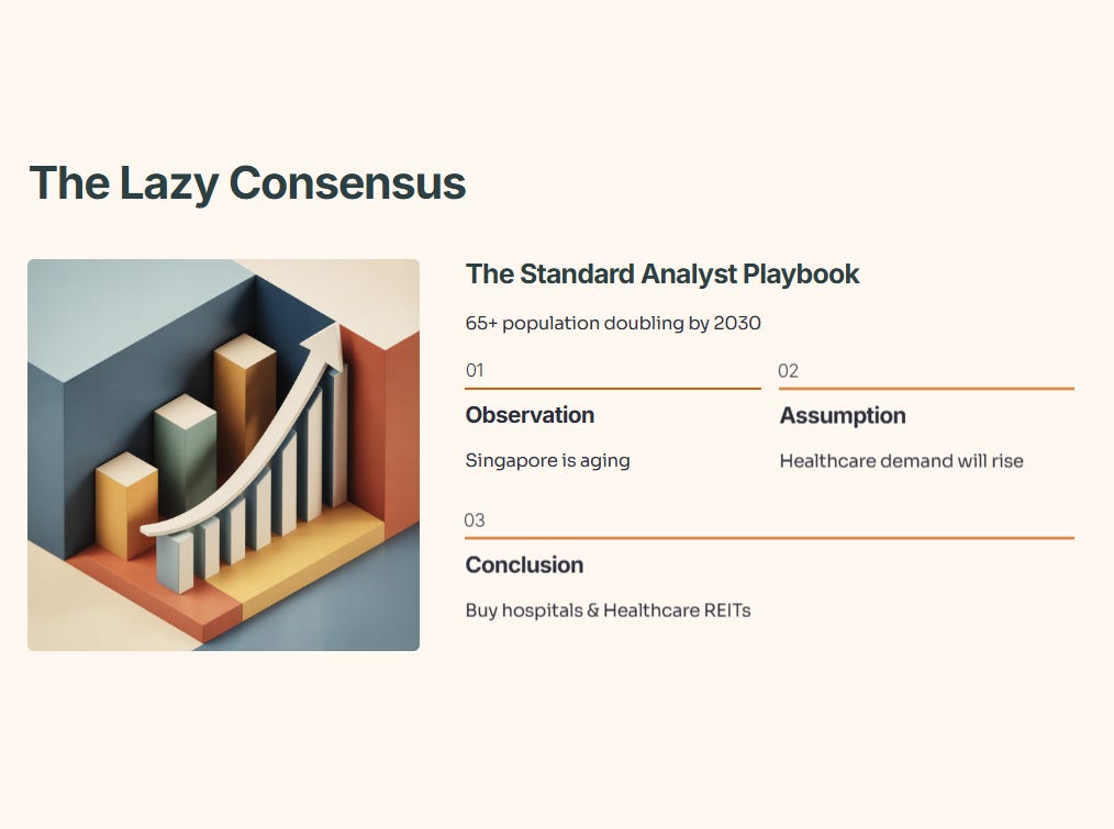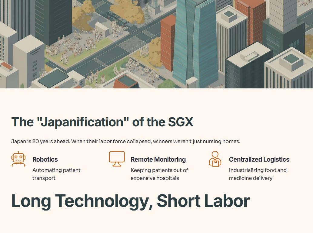 Today, we are going to dissect why the “Aging = Buy Real Estate” thesis is flawed, and why the real money in Singapore’s silver economy will be made in the unsexy world of logistics, specialized manufacturing, and automation.