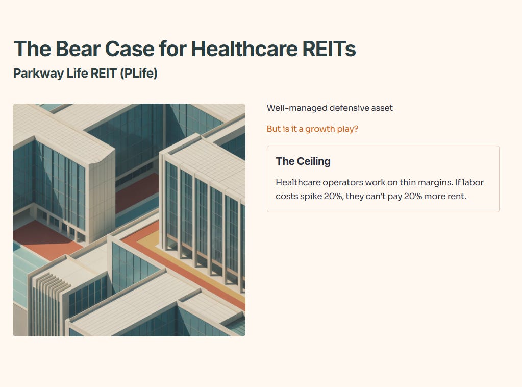Iggy’s Take: REITs act more like a safety net than a vehicle for growing wealth, especially in Singapore’s aging economy. While they can offer stable, defensive returns, the demographic shift—more seniors and fewer working-age people—means rising labor costs and tighter margins for healthcare operators, who are often the tenants of Healthcare REITs. These operators may see higher demand, but also face significant cost pressures from wage inflation and worker shortages, so they’re unlikely to afford much higher rents. As a result, REITs tied to healthcare real estate become more of a capital preservation play in this context—good for not losing money, but unlikely to deliver outsized gains from this demographic trend. If you want real growth, you need to look beyond just owning the buildings.