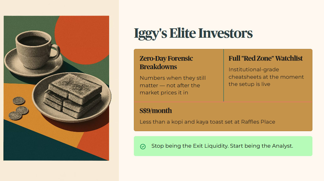 Iggy’s Elite Investors don’t just get the report earlier. They get it when the numbers still matter — zero-day forensic breakdowns, the full “Red Zone” watchlist, and institutional-grade cheatsheets at the moment the setup is live, not after the market has already priced it in.