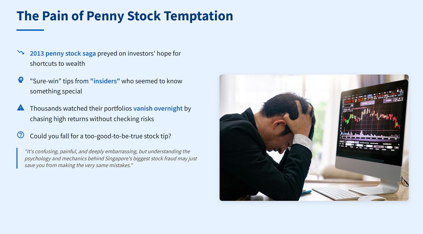 This story is more than just a tale of greed; it’s a crash course in spotting danger before it’s too late. If you’ve ever wondered, “Could I fall for a too-good-to-be-true stock tip?” or found yourself reading improbable profit stories on WhatsApp, understanding the psychology and mechanics behind Singapore’s biggest stock fraud may just save you from making the very same mistakes.