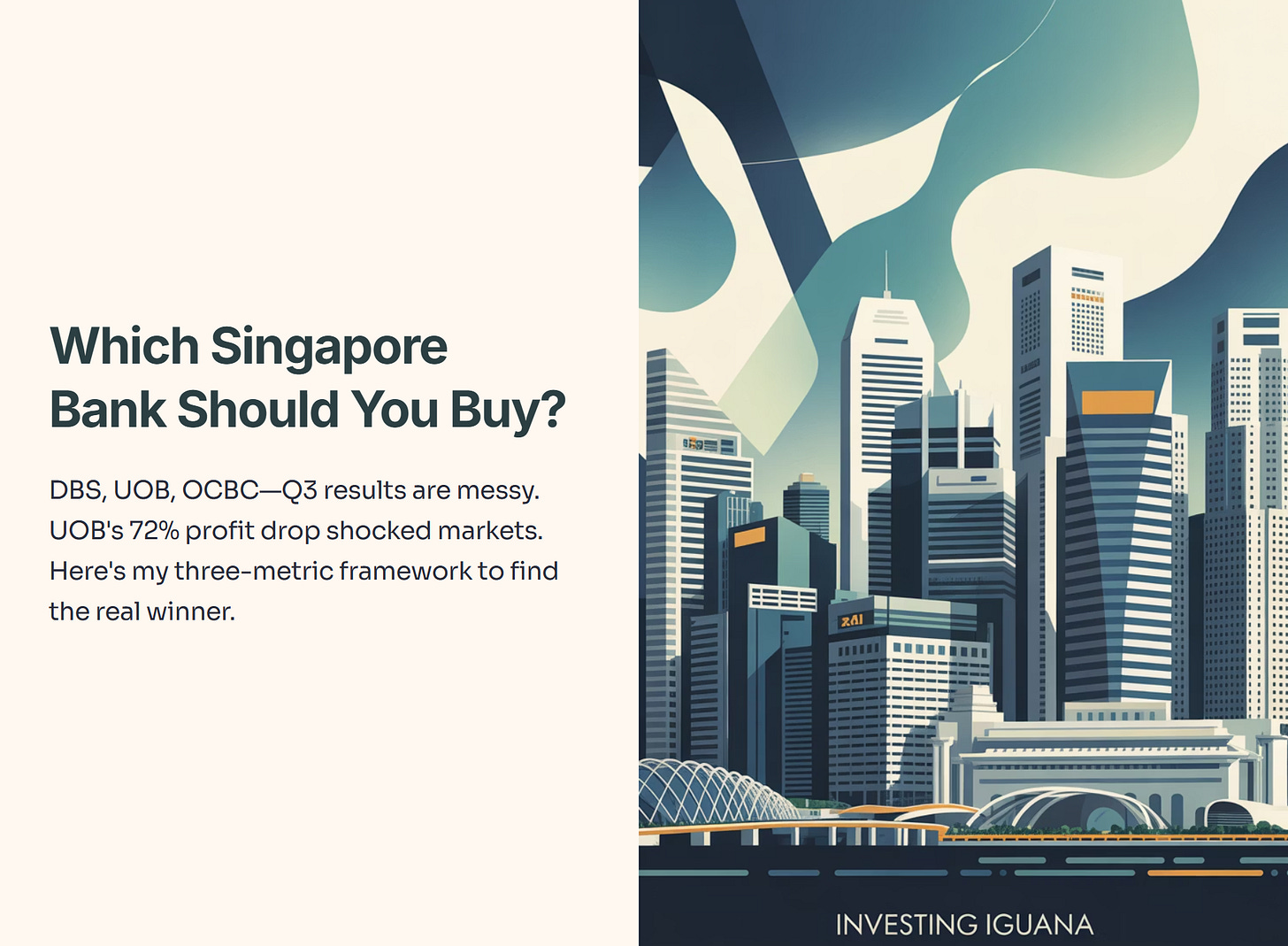 But the real story is different. The “free” news tells you what happened. This premium analysis will tell you the “so what?” I’m going to give you my three-metric framework for how I analyze banks, then I’ll tell you exactly which one I’d be buying with your S$10,000.