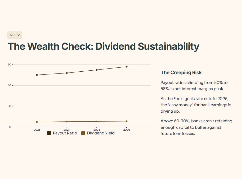 The narrative in the coffee shops is simple: “Buy DBS, get 5% yield, retire.” But we need to ask if they are paying us from sustainable earnings or if we are entering a “Refund” phase. Historically, these banks have been incredibly disciplined. However, as net interest margins (NIM) peak and the Fed begins to signal rate cuts in 2026, the “easy money” for bank earnings is drying up. If the payout ratio climbs too high while earnings stagnate, that dividend isn’t a “yield”—it’s a liability.