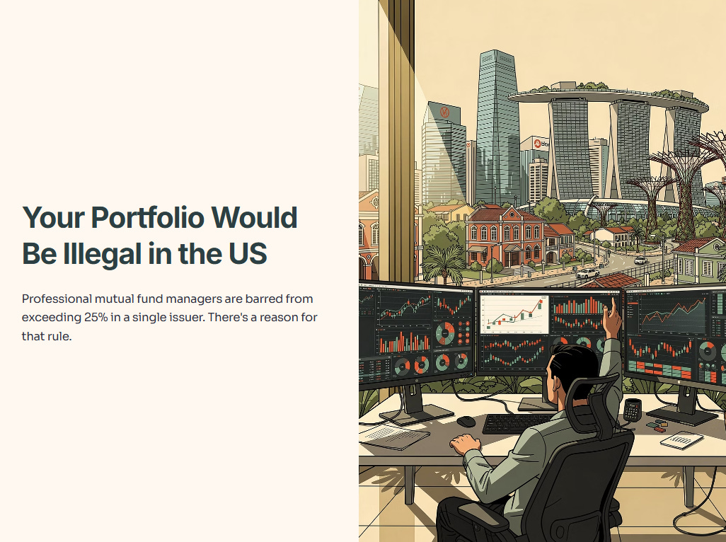 The contrarian truth, however, is that you are currently running a portfolio that would be illegal for a professional US mutual fund manager to operate. While retail investors poured nearly S$4 billion into these three banks in 2025 alone, they are ignoring a fundamental law of physics in finance: concentration works both ways. You think you are diversified because you own “The Big Three,” but since they all move on the same interest rate and credit cycle drivers, you aren’t holding three stocks—you’re holding one giant, leveraged bet on the MAS and the Fed.