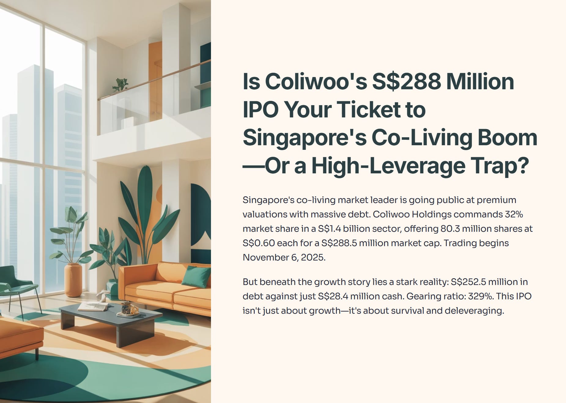 Singapore’s co-living market leader is going public at premium valuations with massive debt. Here’s what the numbers really tell you.