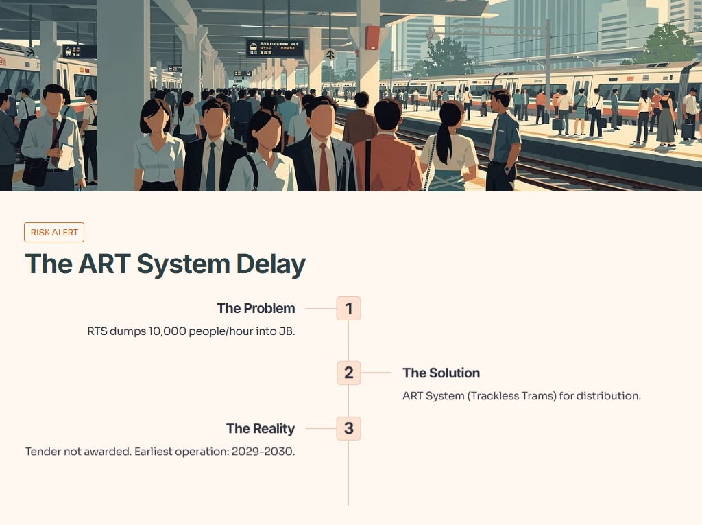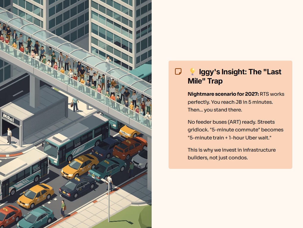 Because there are no feeder buses (ART) ready to take you to your condo 5km away. The streets gridlock. The “5-minute commute” becomes a “5-minute train + 1-hour Uber wait.”