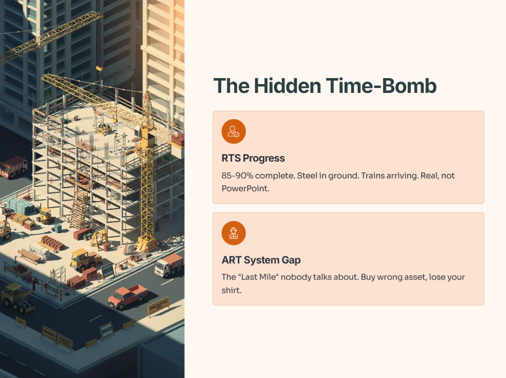 The RTS Link is 85-90% complete. The steel is in the ground. The trains are physically there. This is no longer a PowerPoint presentation. However, there is a hidden time-bomb called the “ART System” that nobody is talking about.