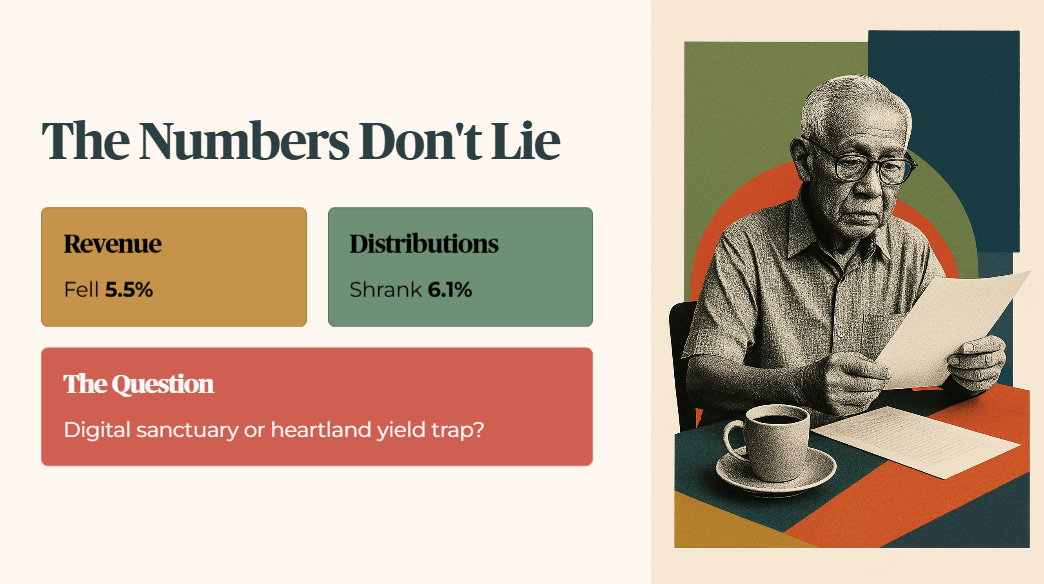 Revenue fell by 5.5 percent and total distributions shrank by 6.1 percent, yet institutional desks barely blinked on earnings day. For a heartland retiree holding Mapletree Industrial Trust in their Supplementary Retirement Scheme, this is a structural reduction in monthly passive income. You cannot ignore it. Today, we strip away the management noise to audit the true organic floor of this data centre giant. We ask if that 6.33 percent yield is a digital sanctuary or a heartland yield trap.