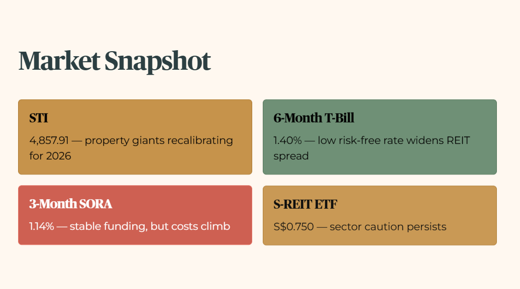 STI Level: 4,857.91 — Support levels being tested as property giants recalibrate for 2026.