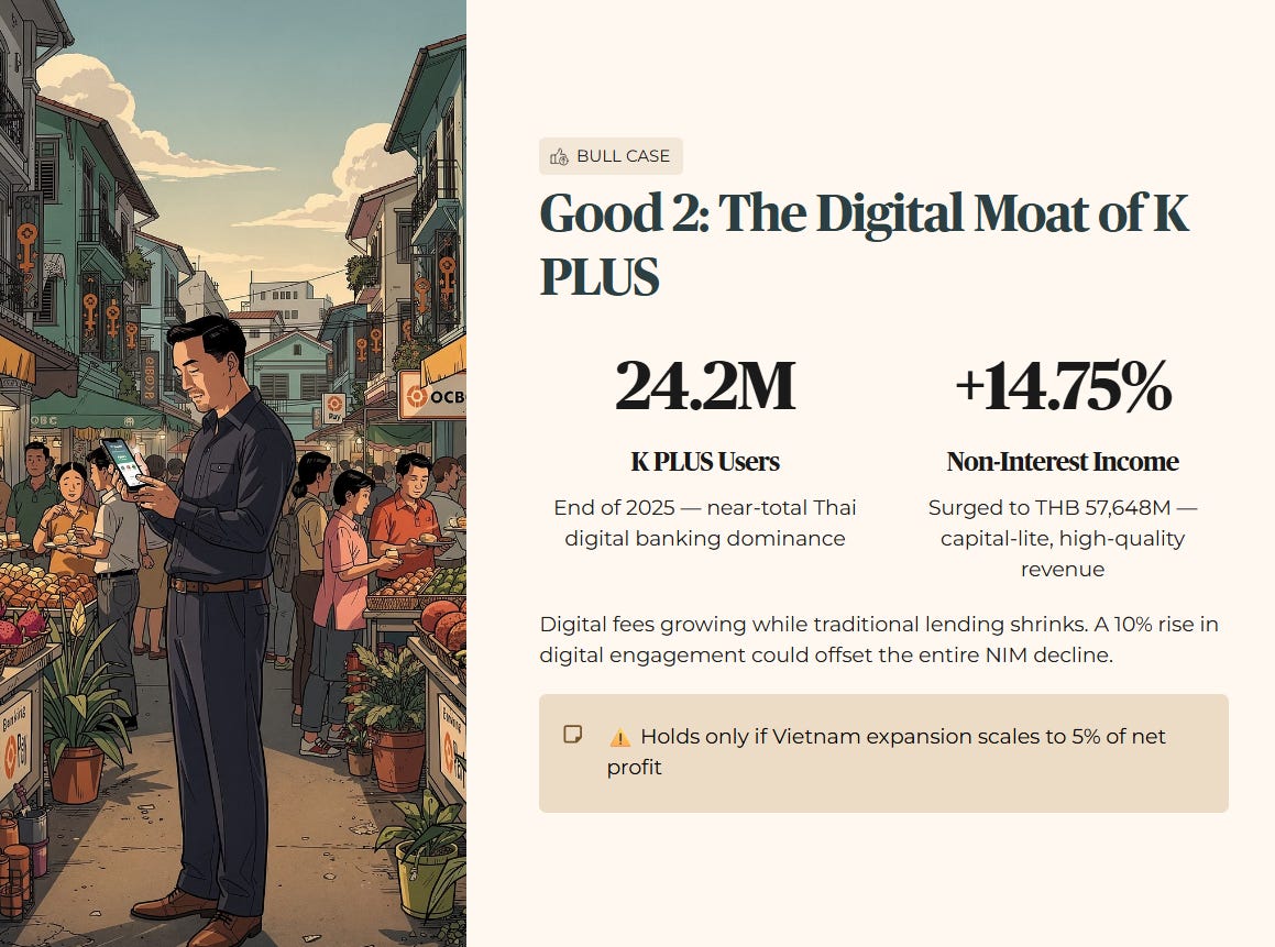 Forensic Caveat: This bull case only holds if the CET1 ratio remains above 15% to satisfy Bank of Thailand regulators.