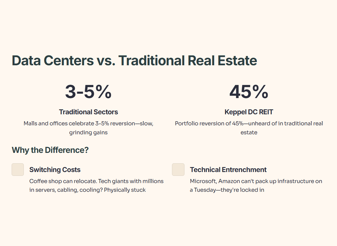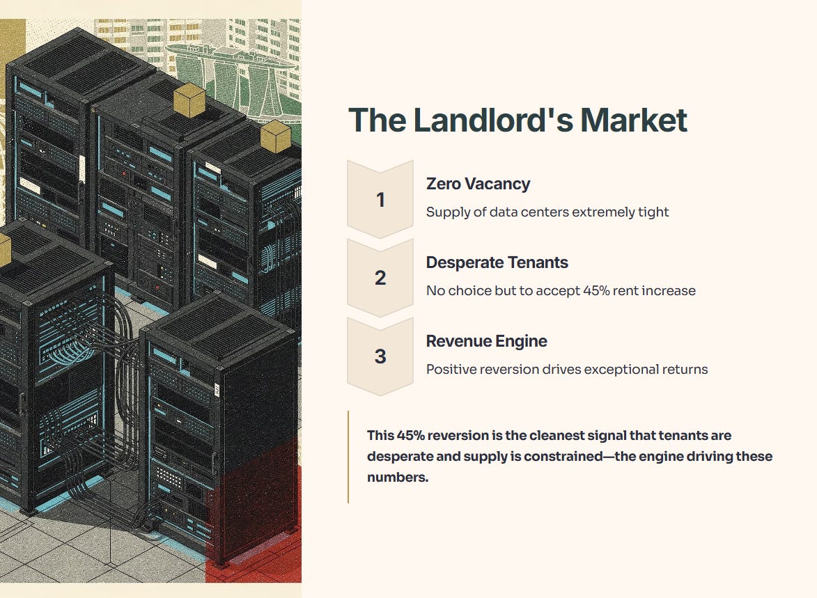 This is why KDCREIT’s reported ~45% portfolio reversion is such a big deal. It is the cleanest signal we have that data centre supply is tight and tenants are desperate for space. This positive reversion is the engine under the hood of the numbers you’re seeing in this report.