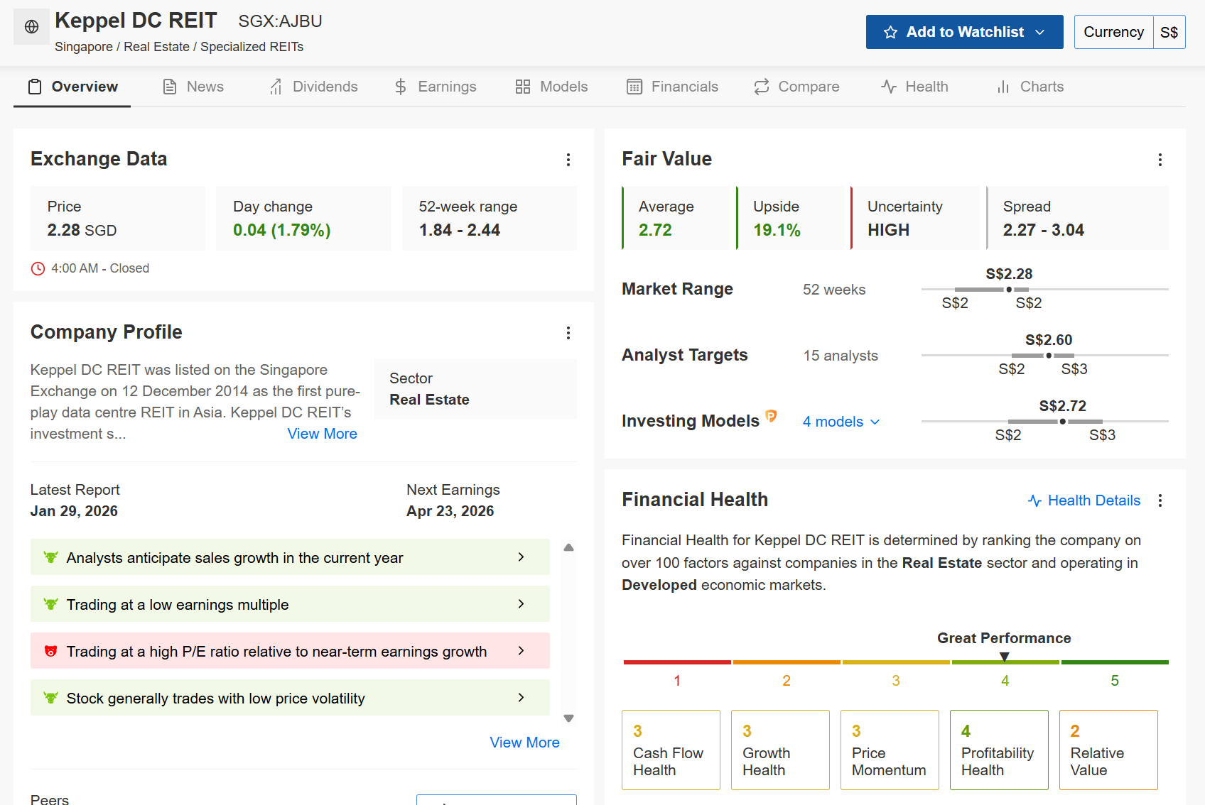 The Upside: InvestingPro calculates a Fair Value of S$2.72.