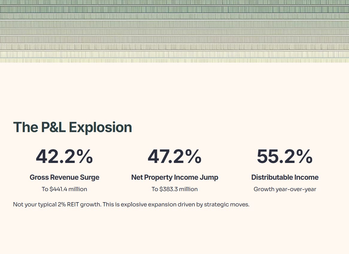 Revenue is up 42%, DPU hit double digits, and portfolio reversions are a staggering 45%. But with leverage ticking up, is the growth priced in?
