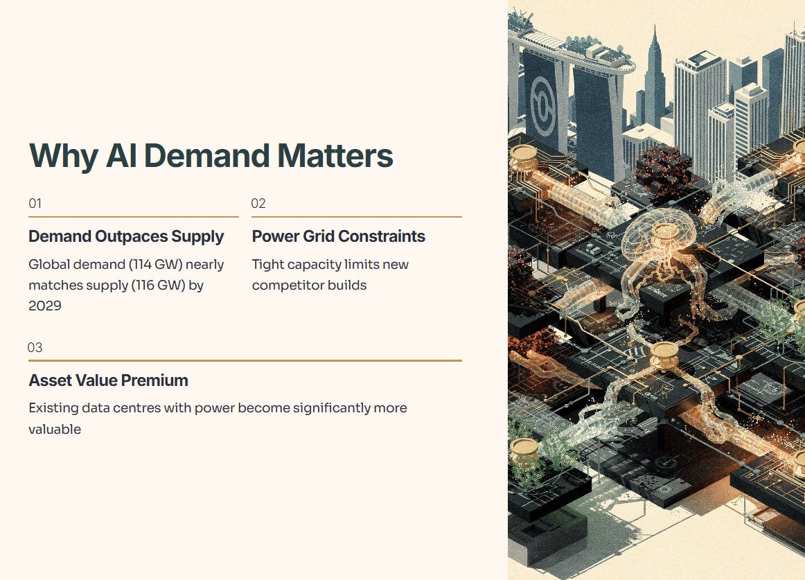 Constraints: They list “tight power grid capacity” as a key limitation. If you already have the data centre with power (like KDCREIT does), your asset becomes significantly more valuable because competitors can’t just build a new one next door easily.