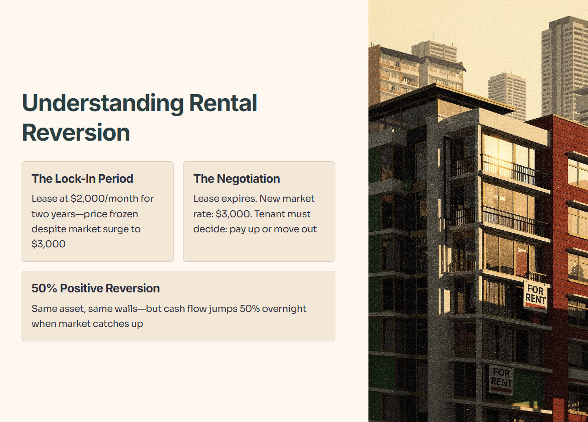 The magic only happens when the lease expires. You sit down with the tenant and say: “Look at market prices. If you want to stay, the new rent is S$3,000.” If the tenant agrees, you’ve just achieved a 50% positive rental reversion. The walls didn’t change. The floor didn’t change. But the cash flow from that same asset jumped 50% overnight because the contract caught up with reality.