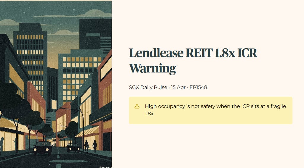 Lendlease REIT Retiree Gearing Risk Alert | SGX Daily Pulse 15 Apr | 🦖EP1548