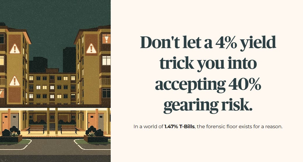 In a world of 1.47% T-Bills, do not let a 4% yield trick you into accepting 40% gearing risk.