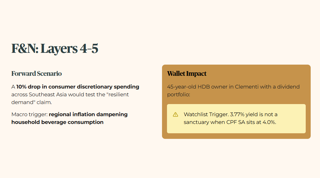 Layer 5 — Wallet Impact: A 45-year-old HDB owner in Clementi with a dividend portfolio would view this as a Watchlist Trigger. The pivot is strategically sound, but the current 3.77% yield is not a sanctuary when the CPF SA benchmark sits at 4.0%.
