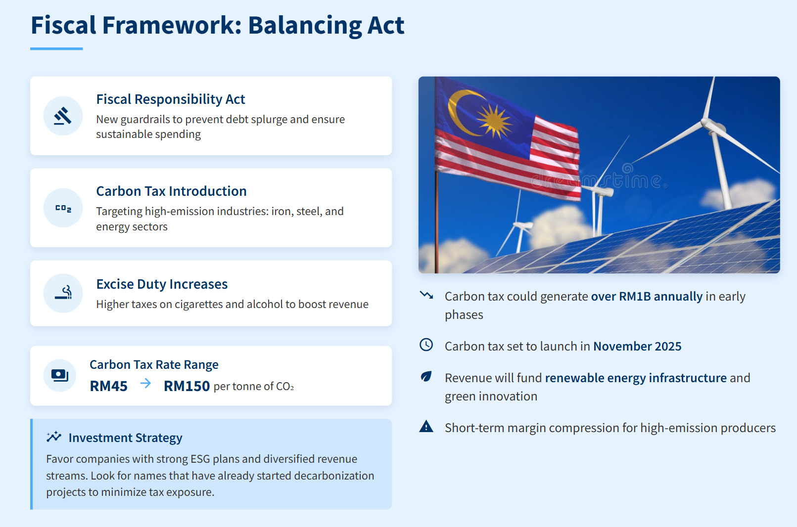 Starting in 2026, a carbon tax will target high-emission industries like iron, steel, and energy, with projected rates between RM45 and RM150 per tonne. This, combined with new excise duties on cigarettes and alcohol, creates a classic double-edged sword for investors.
