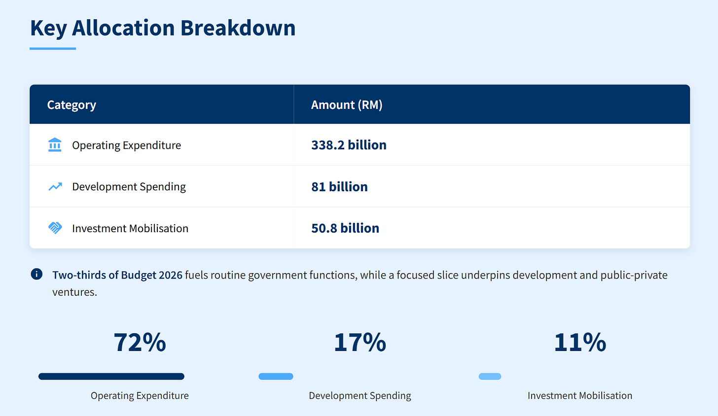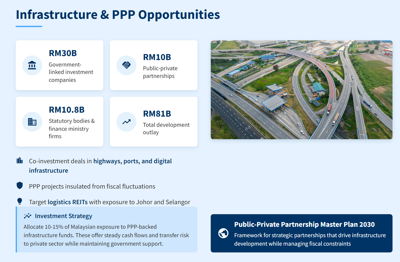 While the headline development outlay dipped slightly to RM81 billion, the real story is how the government is funding major projects. The Public-Private Partnership (PPP) Master Plan 2030 is mobilizing over RM50 billion from government-linked companies, private partnerships, and statutory bodies.