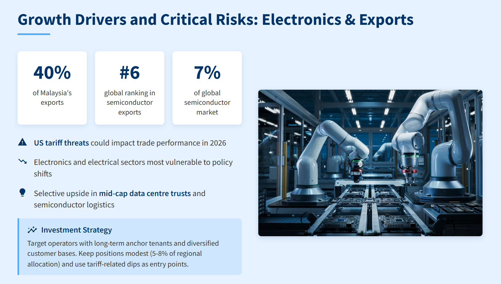 This poses a critical question for investors: should you overweight Malaysian tech? My analysis shows the upside is selective. The real opportunity lies not in the obvious large-cap exporters, but in mid-cap data centre trusts and semiconductor logistics names. The key is to find operators with long-term anchor tenants and diversified customer bases, which insulates them from supply-chain shocks.