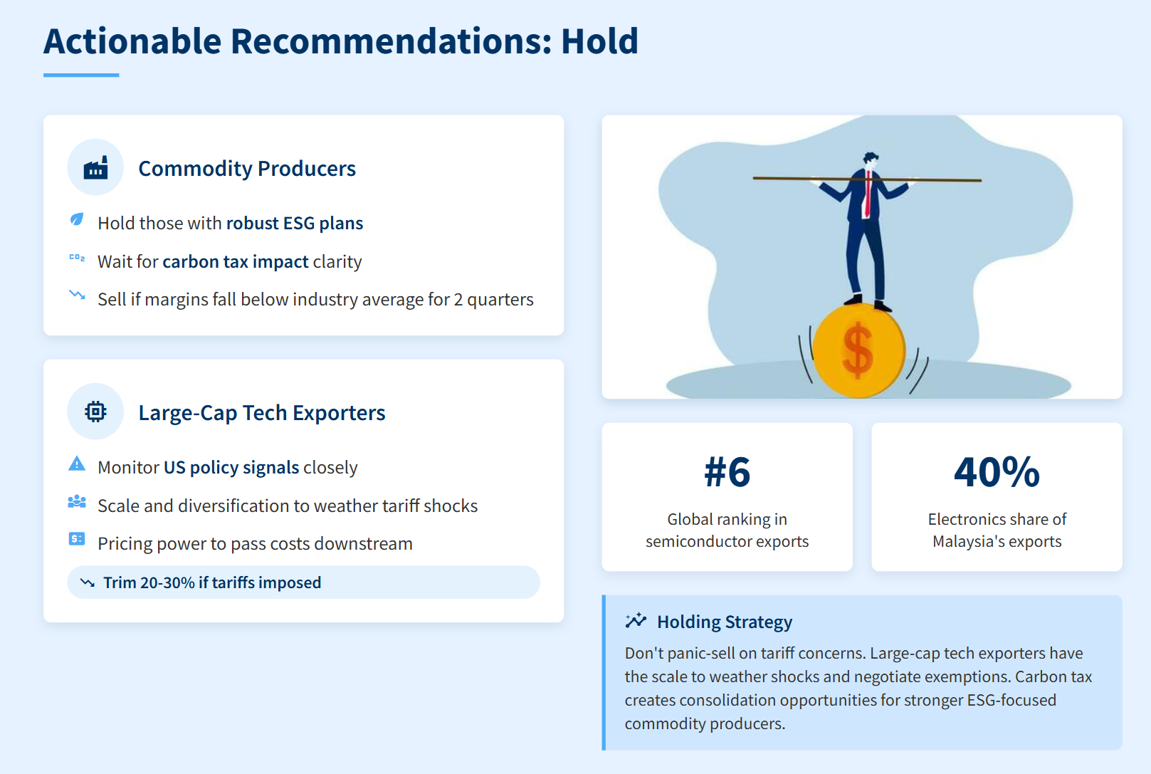 The correct strategy is to hold these positions and monitor US policy signals closely. If tariffs are actually imposed, that is the time to trim your exposure by 20-30% and reallocate to more domestic-focused plays. But until that happens, you hold. The risk is elevated, but so is the potential upside if trade tensions ease.