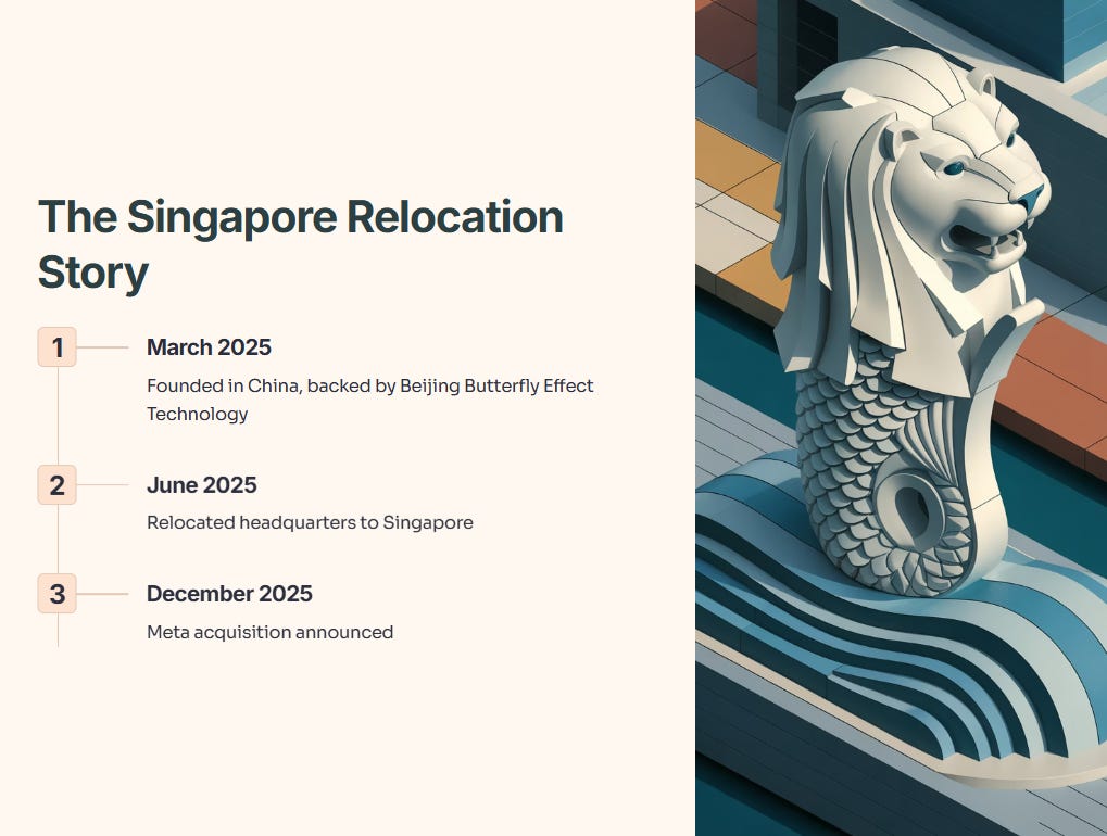 Here represents the “Second-Order Effect” that most retail investors miss. Manus was founded in China. It was backed by Beijing Butterfly Effect Technology. And in June 2025—just three months after launch—it packed up and relocated its headquarters to Singapore.