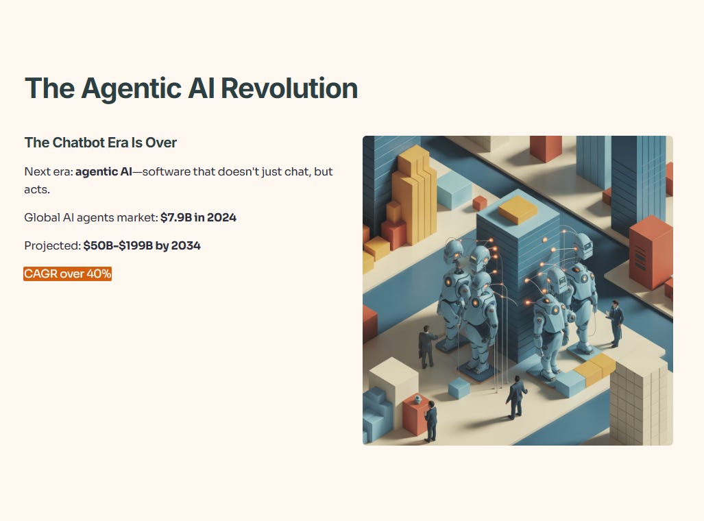 Let me be direct: the chatbot era is over. Everyone has a chatbot. The next era is agentic AI—software that doesn’t just chat, but acts.