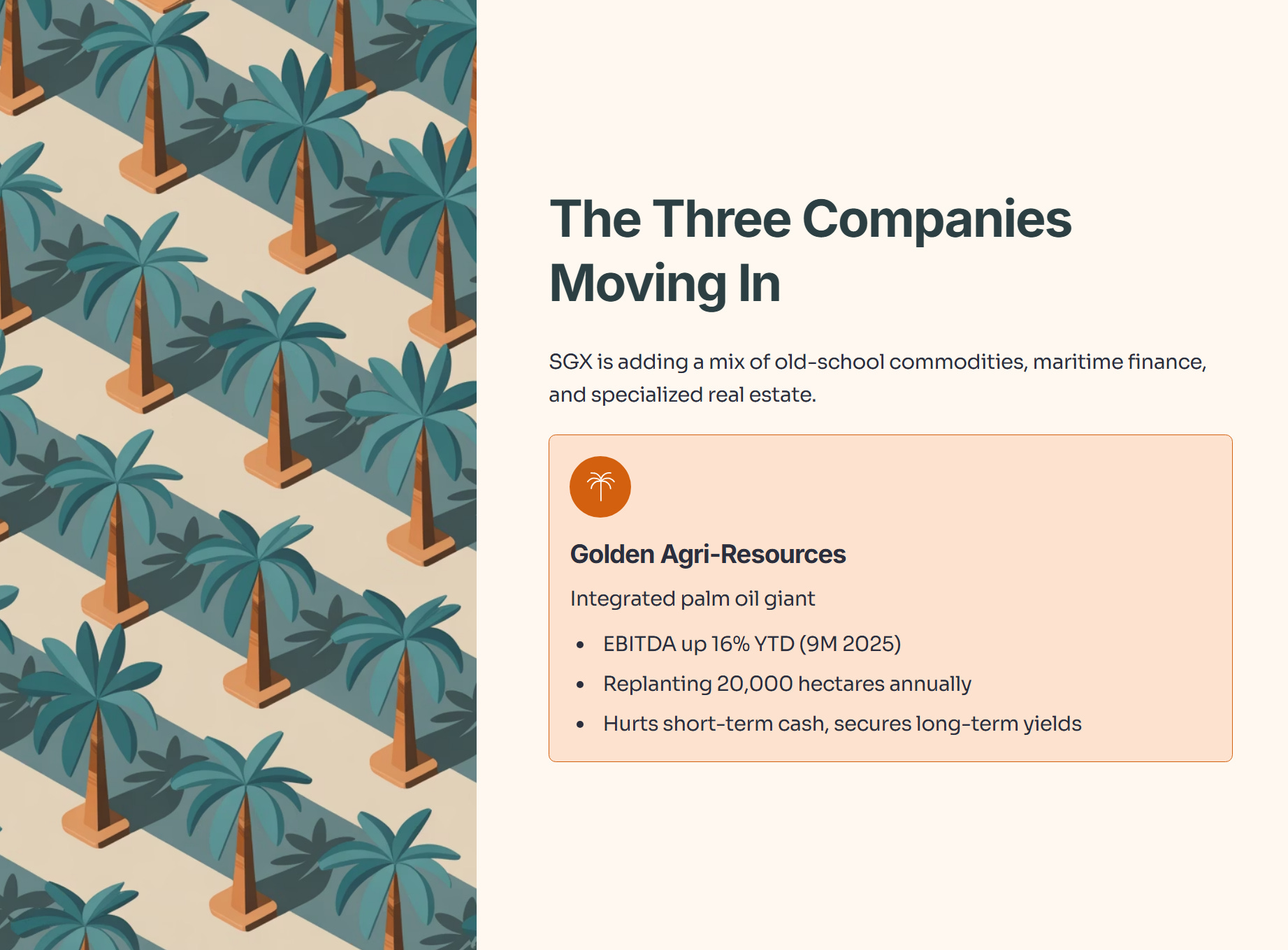 SGX is adding a mix of old-school commodities, maritime finance, and specialized real estate.