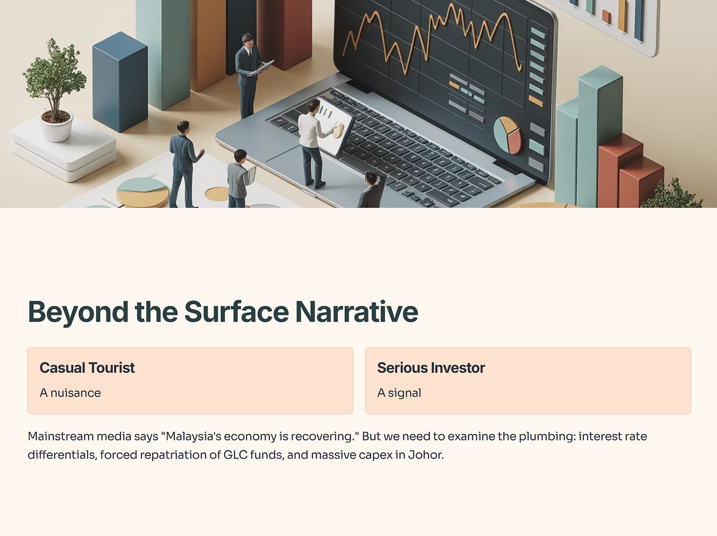 The prevailing narrative in the mainstream media is simple: “Malaysia’s economy is recovering.” But that is a surface-level observation. We need to look at the plumbing of the financial system—the interest rate differentials, the “forced” repatriation of GLC funds, and the massive capital expenditure cycle in Johor—to understand if this trend is a trade or a trap.
