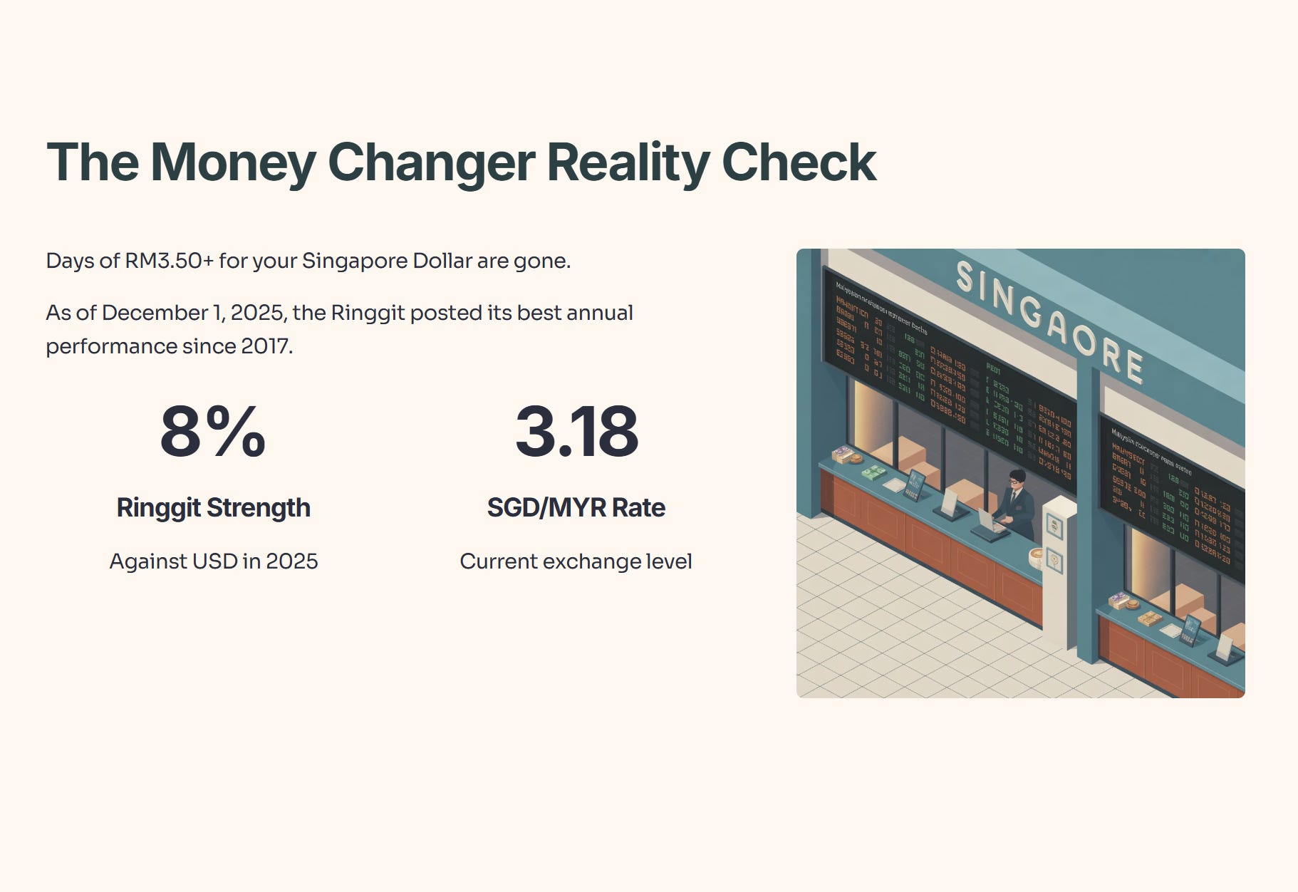 As of December 1, 2025, the Ringgit has posted its best annual performance since 2017, strengthening approximately 8% against the Greenback and pushing the SGD/MYR rate down to the RM3.18 range.