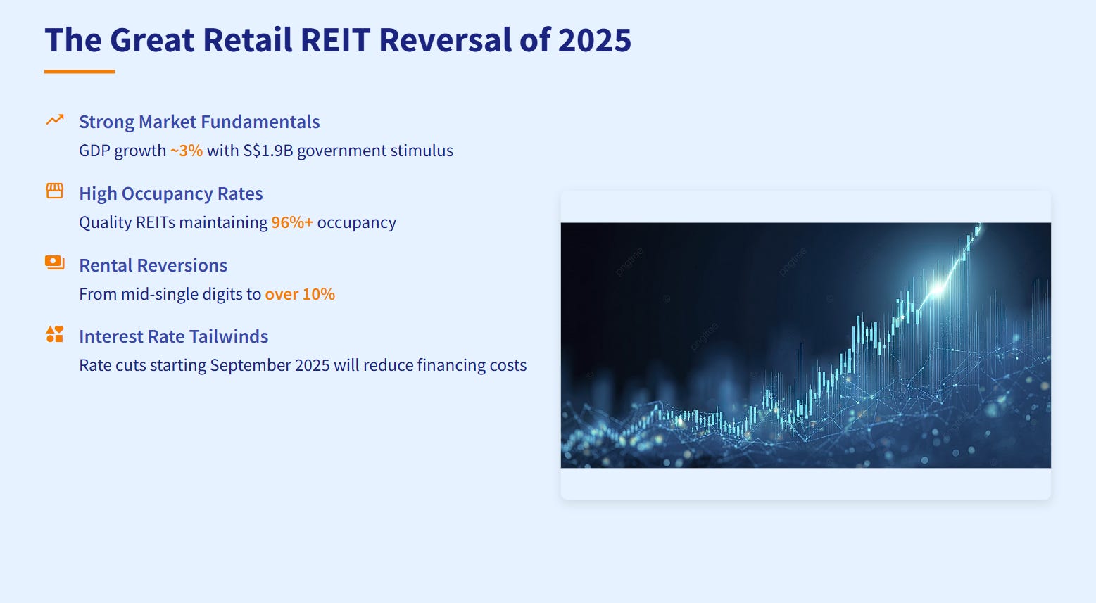 Singapore’s retail REIT sector is experiencing its strongest recovery since the pre-COVID era, but not all REITs are created equal. The recovery has been led by an unexpected group: smaller, more focused retail REITs that many investors previously overlooked.
