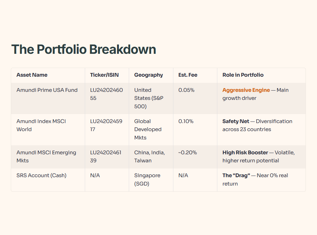 The Verdict: Jay, you already have heavy US exposure in your cash portfolio (Amundi Prime USA). You don’t need more US exposure in your SRS.