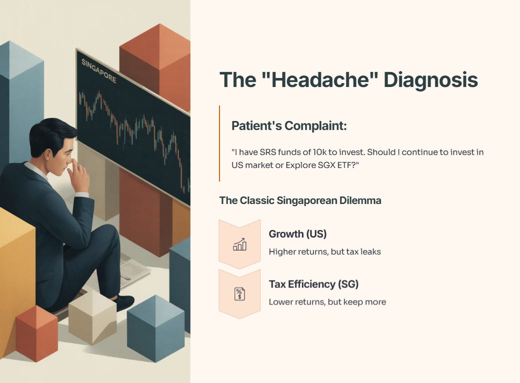 The Patient’s Complaint: “I have SRS funds of 10k to invest. Should I continue to invest in US market or Explore SGX ETF?”