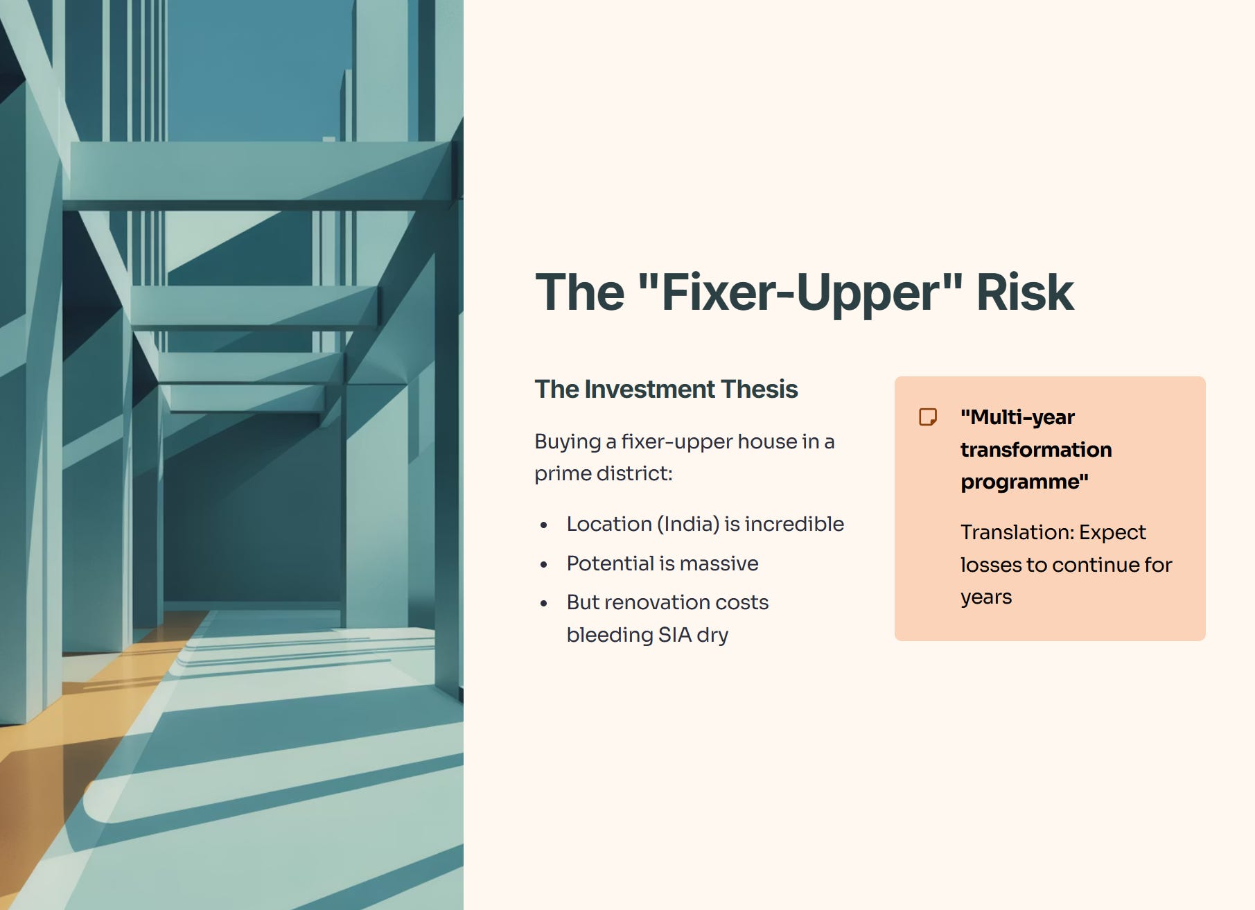 Investing in Air India is like buying a fixer-upper house in a prime district. The location (India) is incredible, and the potential is huge. But right now, the renovation costs are bleeding SIA dry. The report explicitly states SIA is committed to supporting Air India’s “comprehensive multi-year transformation programme” [Page 4]. “Multi-year” is code for “expect losses to continue.”