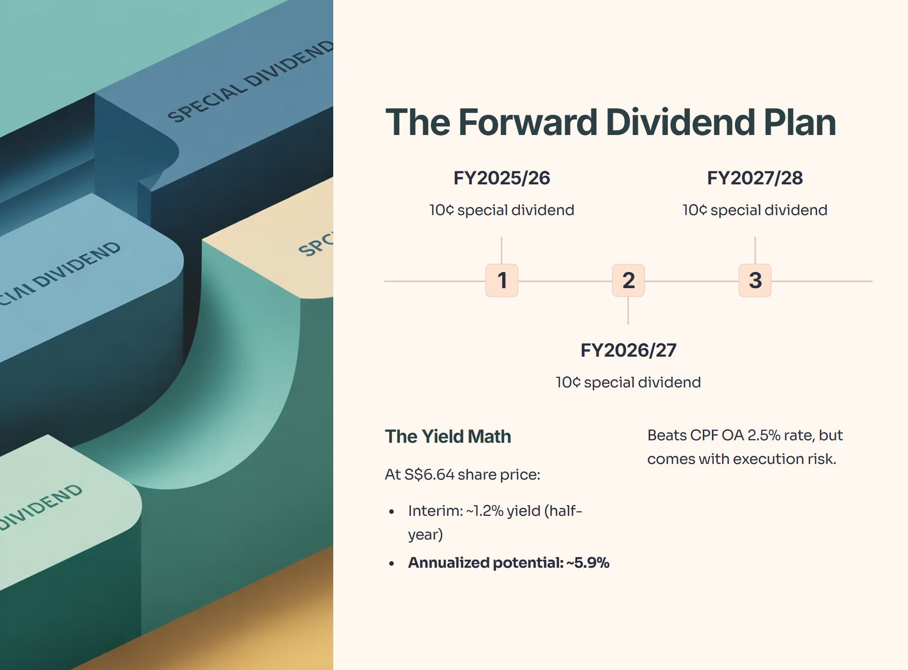 While the 5.9% yield beats the CPF OA 2.5% rate, it is not “risk-free.” You are effectively getting paid a high yield to hold a stock with significant execution risk in India.