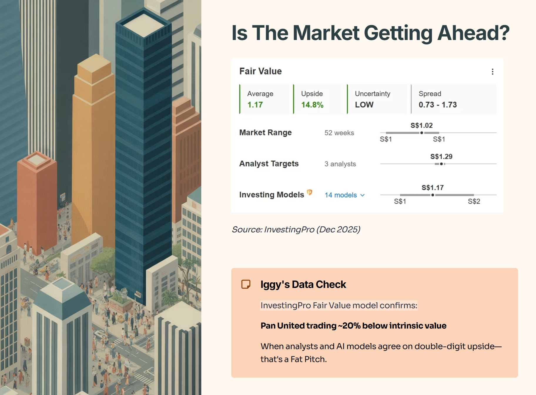 Pan United (P52) standing out with a 26.5% analyst upside is not an accident.