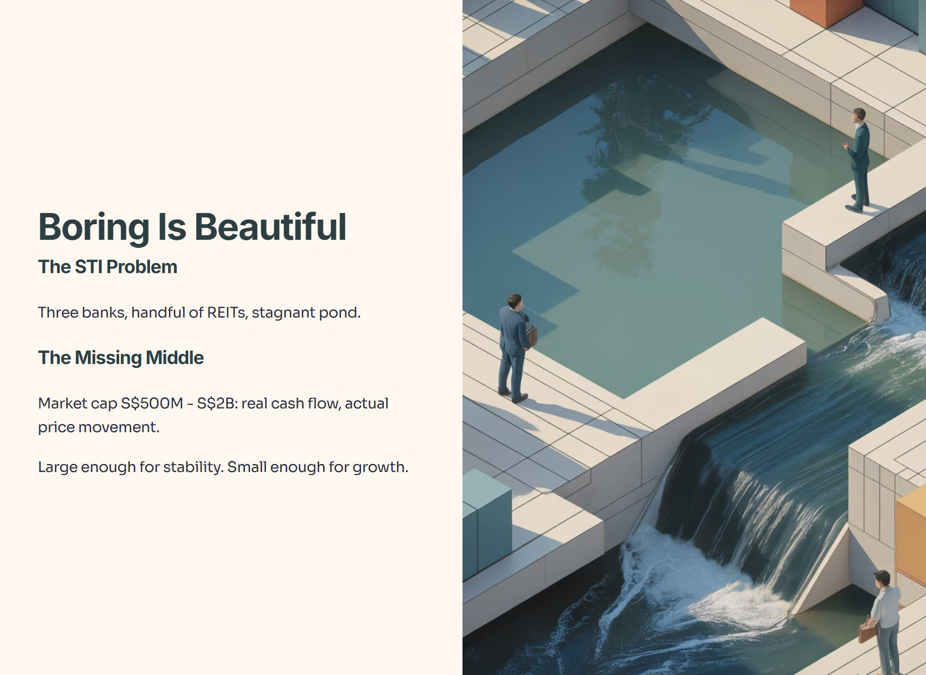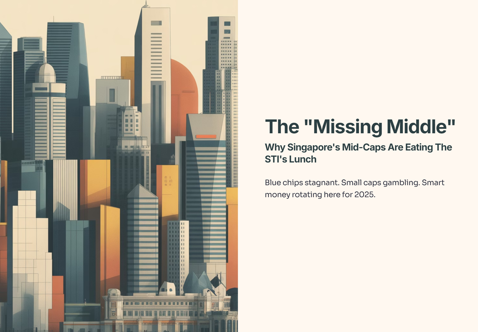 The real action is happening in the “Missing Middle”—Mid-Cap stocks (market cap S$500M - S$2B). These companies are large enough to have real cash flow and dividends, but small enough that a single contract win or sector rotation actually moves the needle on their share price.