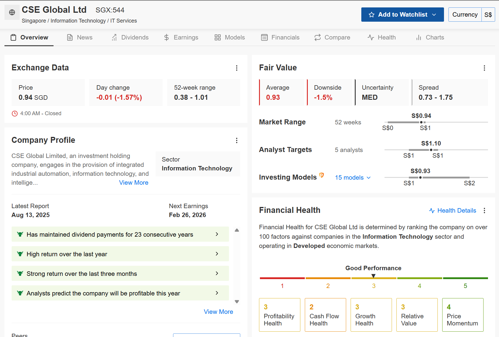 CSE Global (544), on the other hand, is trading at a PE of 24.6x.